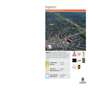 Edgemont is a commercial development ideally located in the fast-growing and affluent West Edmonton area. Adjacent to the busy 199 St NW and Lessard Road intersection, with planned multi-family residential units on-site.